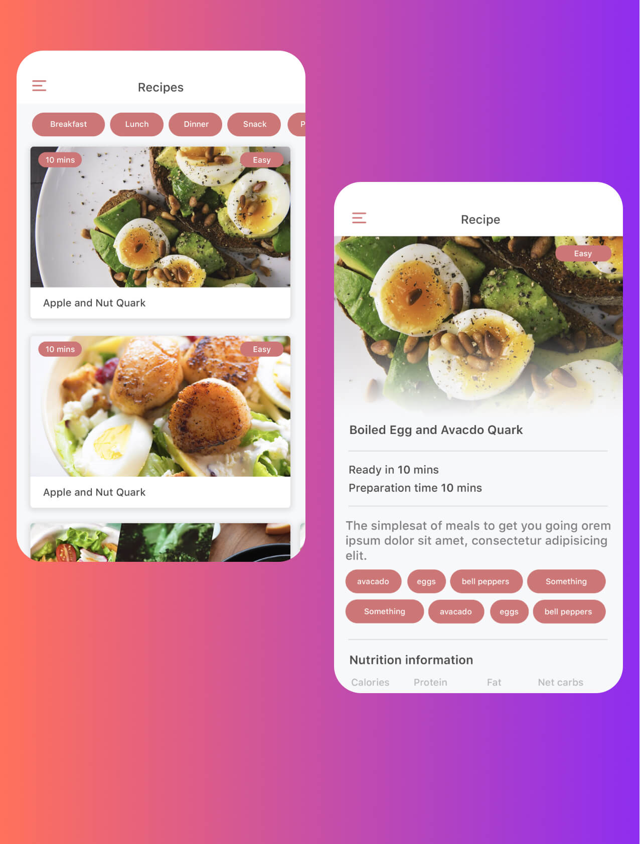 A clear and modern UI design was created, highlighting all the core fitness areas. The recipes were design to be easy to follow. The first round of user testing has proven to be successful.