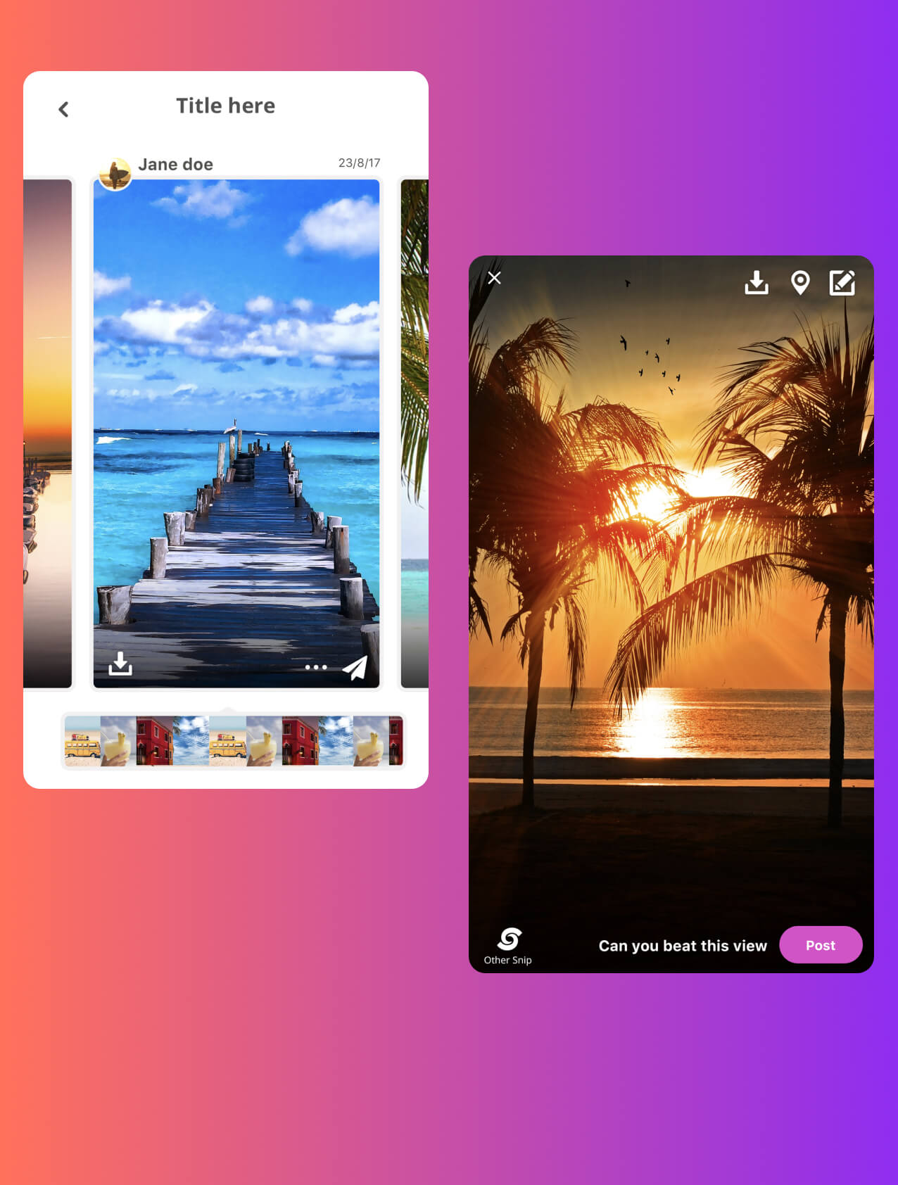 Sniptures aim is to bring the travellers of the world with a new take on photo sharing app and community, tapping in to a niche who love to share their travels with friends, families and followers ( and add in a little extra content ).